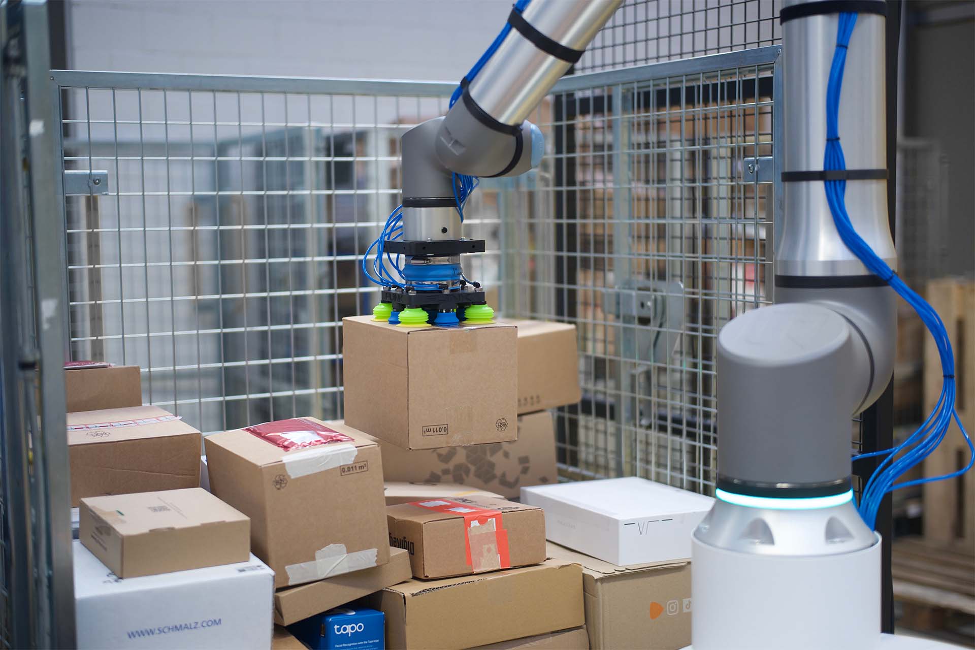 Packs parcels into stable, space-efficient cages directly from conveyor streams.